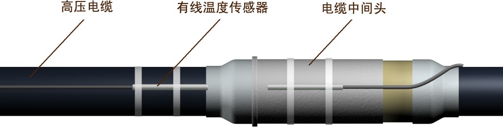 安裝方法:先將有線溫度傳感器緊貼于被測高壓電纜上,然后用絕緣膠帶纏繞傳感器,最后用扎帶綁扎。